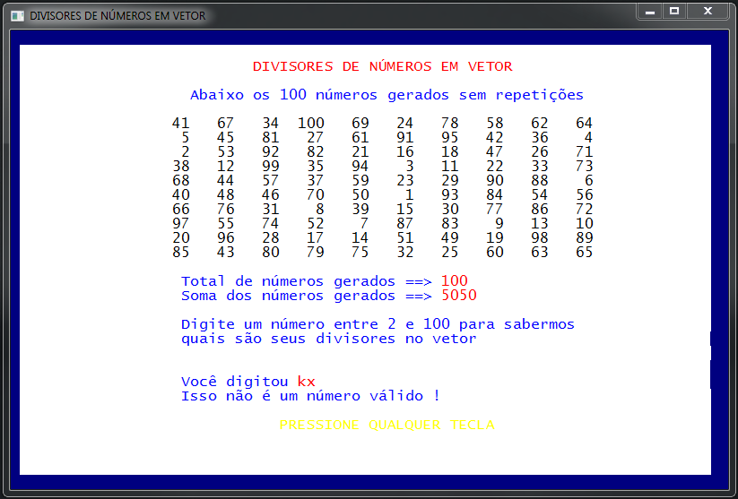 DIVISORES DE NÚMEROS EM VETOR